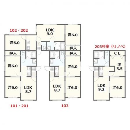 | 面積: 58.8429u 17.8坪 | 敷金: 3ヶ月分 | ||
